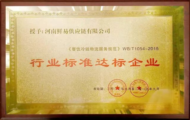 9月7日,第一批《餐飲冷鏈物流服務規范》行標達標企業授牌儀式在濟南舉行,鮮易供應鏈作為行業的標桿和先行者,以標準化的運營服務通過了專家現場審核,與其它11企業共同成為全國第一批《餐飲冷鏈物流服務規范》達標企業。鮮易供應鏈將帶頭示范,進一步推廣《餐飲冷鏈物流服務規范WB/T 1054-2015》在餐飲行業標準的實施應用,樹立行業服務標桿,帶動餐飲冷鏈物流發展的健康發展。