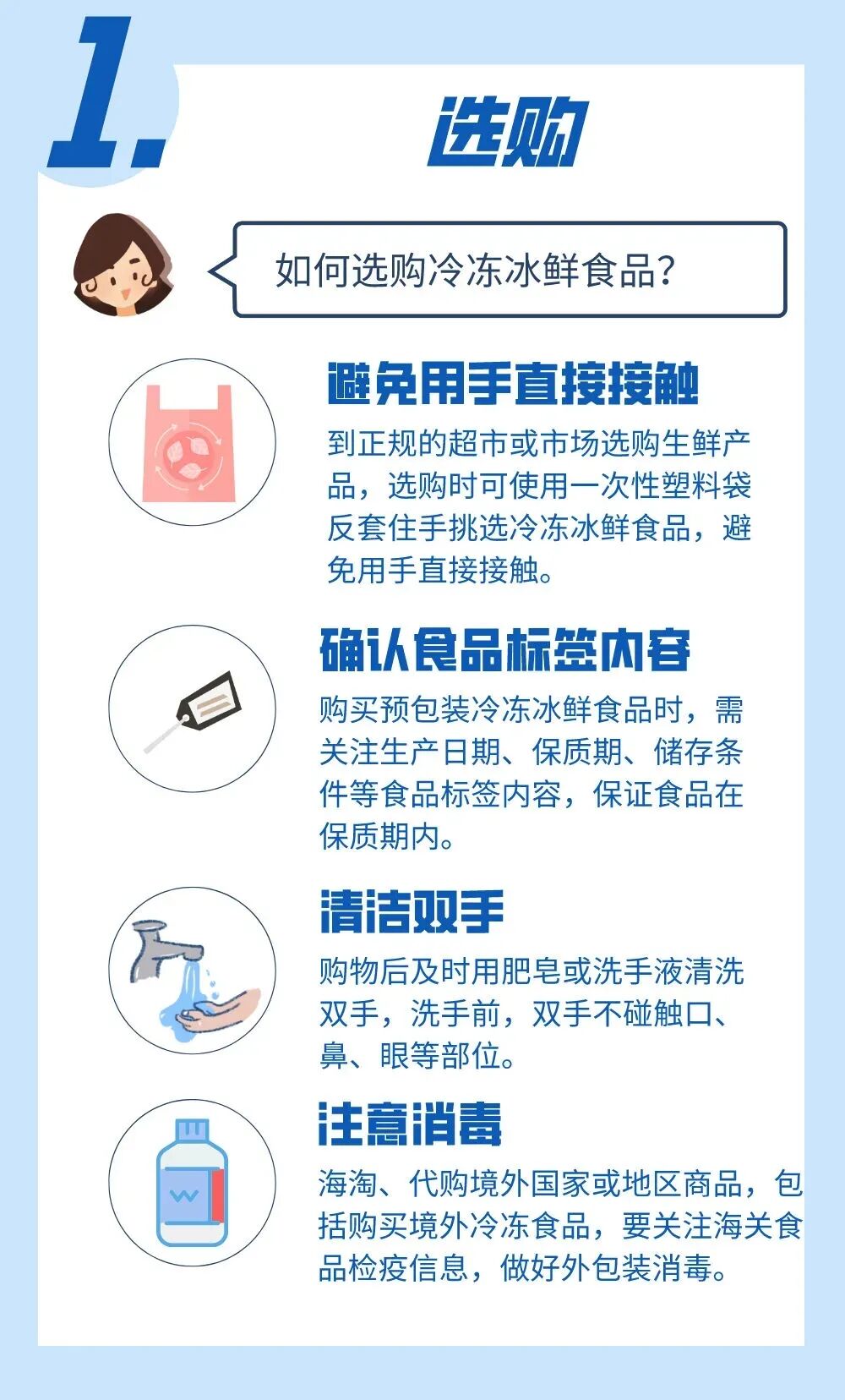 四、市民要增強個人防護意識。選購冷凍食品時,避免手直接觸碰冷凍食品及其包裝。購買冷凍食品回家后,對冷凍食品包裝表面進行消毒。儲存此類物品前,做好獨立封閉包裝。接觸和處理完冷凍食品后,立即洗手消毒。