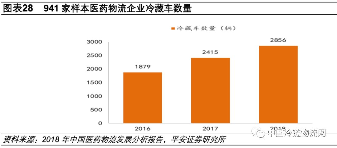 隨著疫苗“一票制”以及監管趨嚴,這兩年我國醫藥冷鏈運輸規范性得到極大提高,規模也相應增大。以我國醫藥商業協會的數據為例,其941家樣本醫藥物流企業的冷藏車數量從2016年的1879家增長到2019年的2856家。預計未來醫藥冷鏈運輸范圍將進一步擴大。